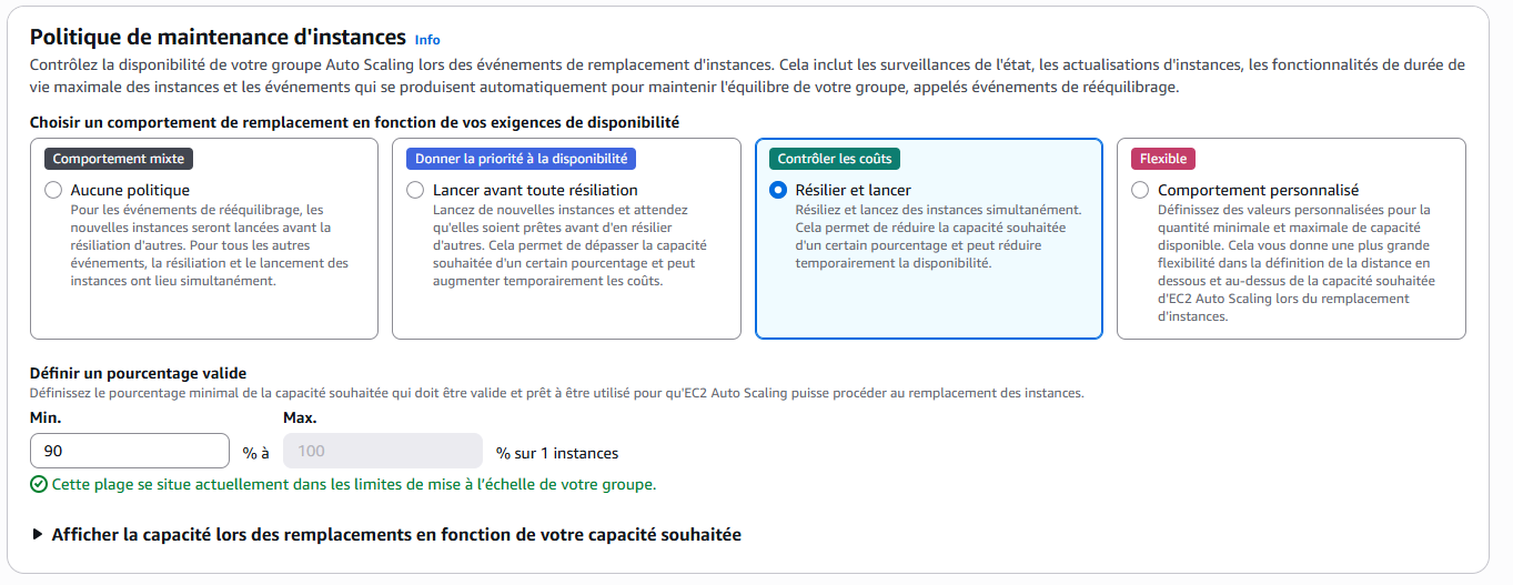 Vérifier que tout est bon, et voila ! Vous avez votre auto scaling.