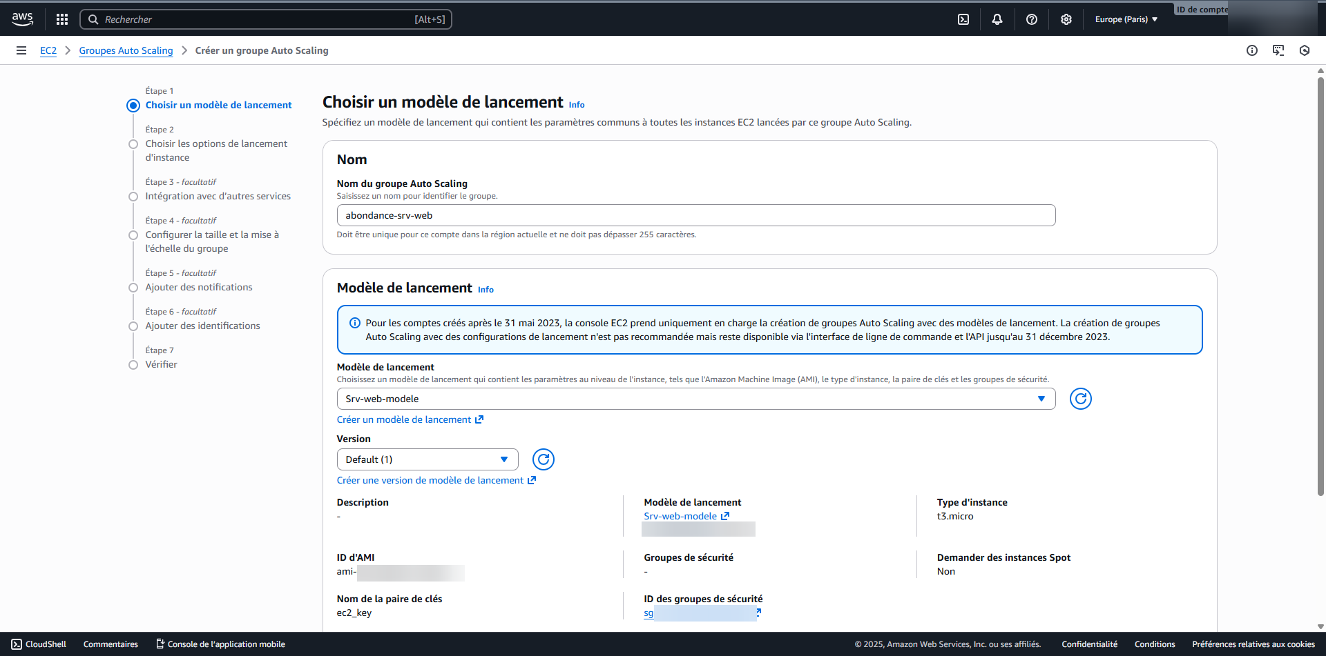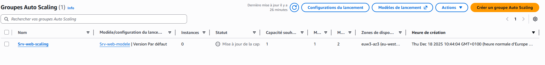 Nous allons maintenant créer notre groupe Auto Scaling