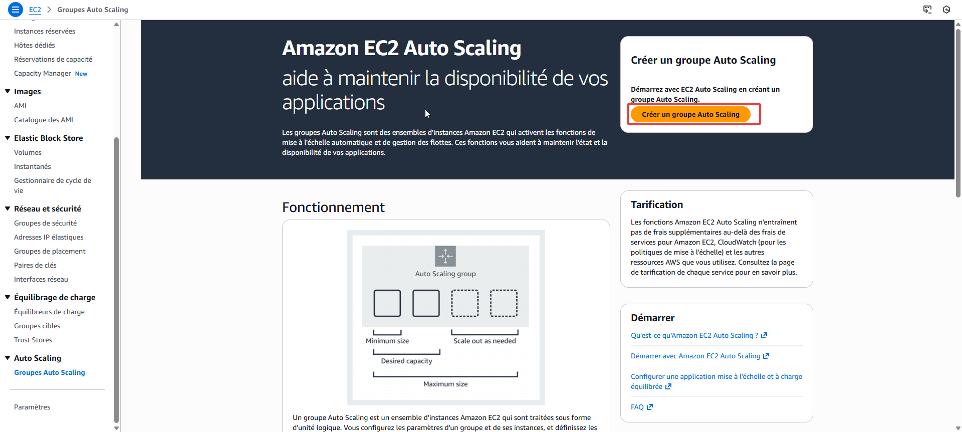Pour cela, nous allons allez dans "Groupe Auto Scaling"